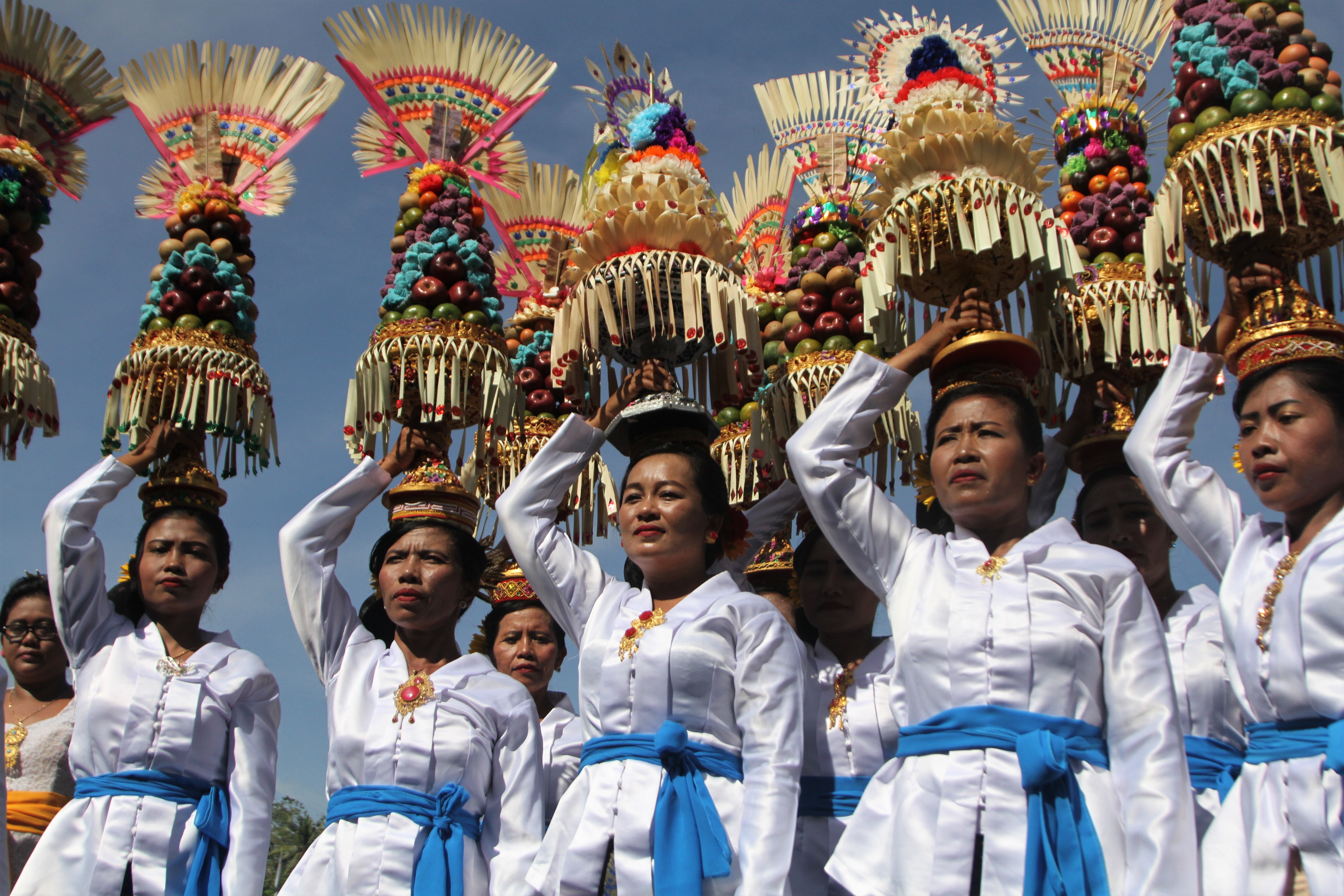Festival Budaya Bali di Desa Jati Bali, Kabupaten Konawe Selatan, Sulawesi Tenggara. Festival budaya Bali yang berlangsung setiap tahun ini bertujuan mempererat silahturahmi sesama ummat Hindu di 17 Kabupaten/Kota di Sulawesi Tenggara serta menjadi hiburan masyarakat tentang tradisi budaya Bali. Sumber foto: Antara Foto